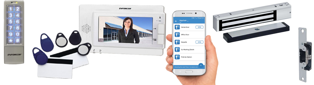 Via card or keyfob. - Magnetic and door strike locking devices.